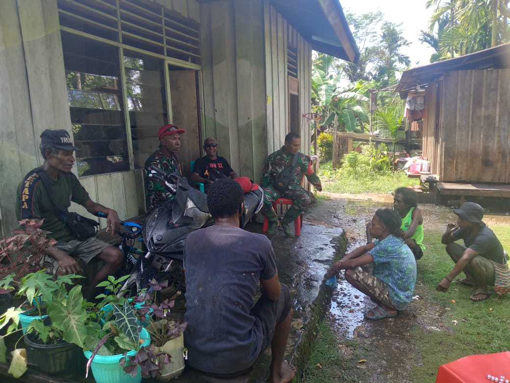Dalam kegiatan ini Babinsa Sertu Jems imbiri di dampingi Sertu john Royali, menyampaikan kepada masyarakatnya agar tidak terpancing dengan isu yang tidak jelas kebenarannya, selain itu babinsa juga menyampaikan agar masyarakat selalu menjaga stabilitas keamanan dalam kampung.