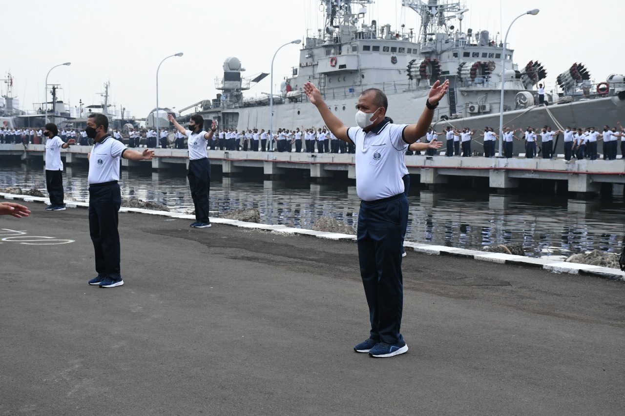 KeizalinNews.com Jakarta —Dalam rangka menjaga kebugaran tuuh para prajurit TNI AL di Jajaran Koarmada I, Komandan Lantamal III Jakarta Brigjen TNI (Mar) Umar Farouq, S.A.P., CHRMP. mengikuti olah raga bersama dengan Panglima Koarmada I Laksda TNI Arsyad Abdullah di Komplek Satuan Koarmada I Pondok Dayung, Jakarta Utara. Jum’at(05/11/2021).