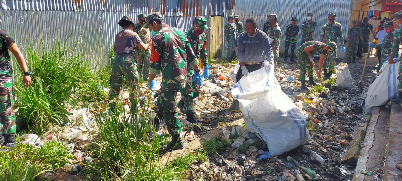 Kegiatan Karya Bakti Jumat Bersih membersihkan Pasar Enarotali berjalan lancar dan aman. (Hera)
