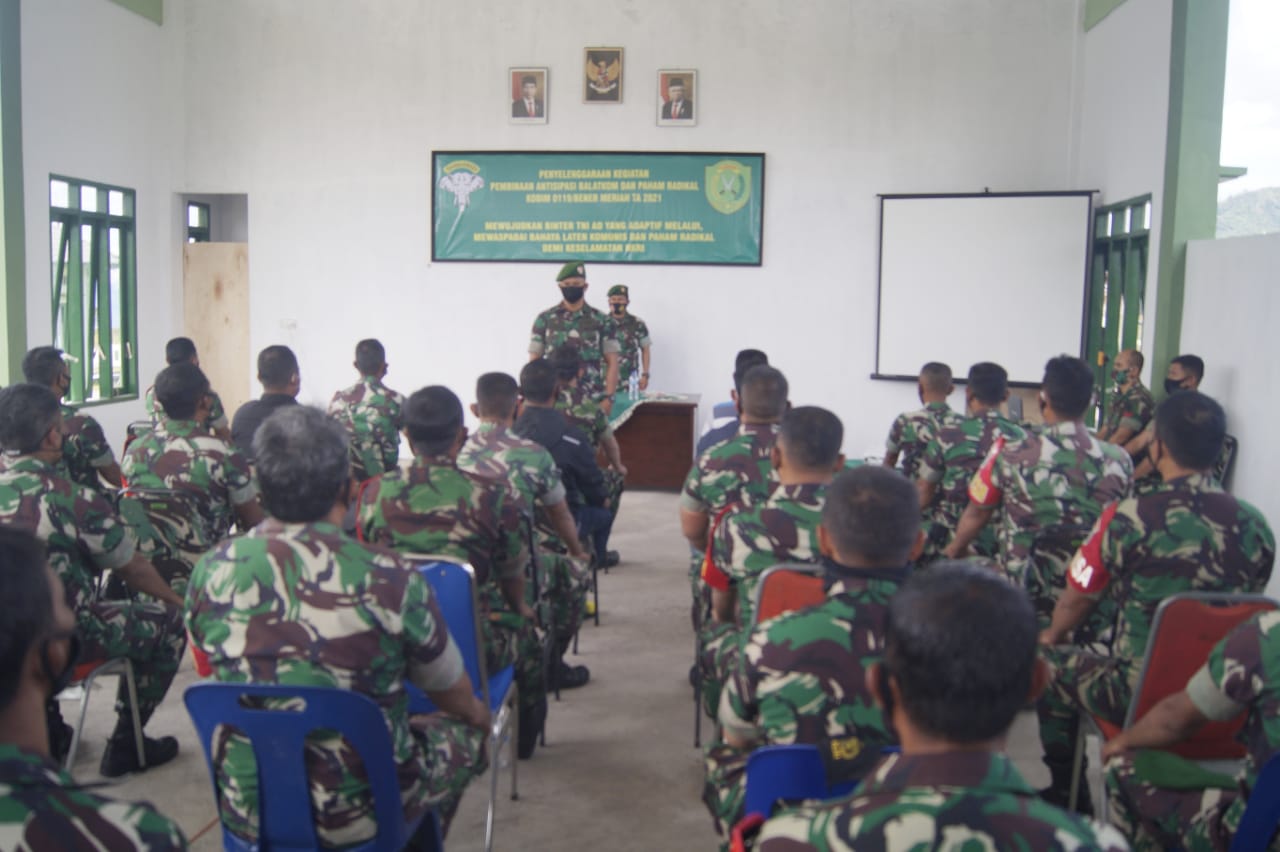Dandim 0119 BM Letkol Inf Eko Wahyu Sugianto Melalui Pasi Ter Kapten Inf Jan Shuardi menjelaskan bahwa kegiatan pembinaan antisipasi Balatkom dan Paham Radikal ini merupakan kegiatan rutin Kodim 0119/ BM.