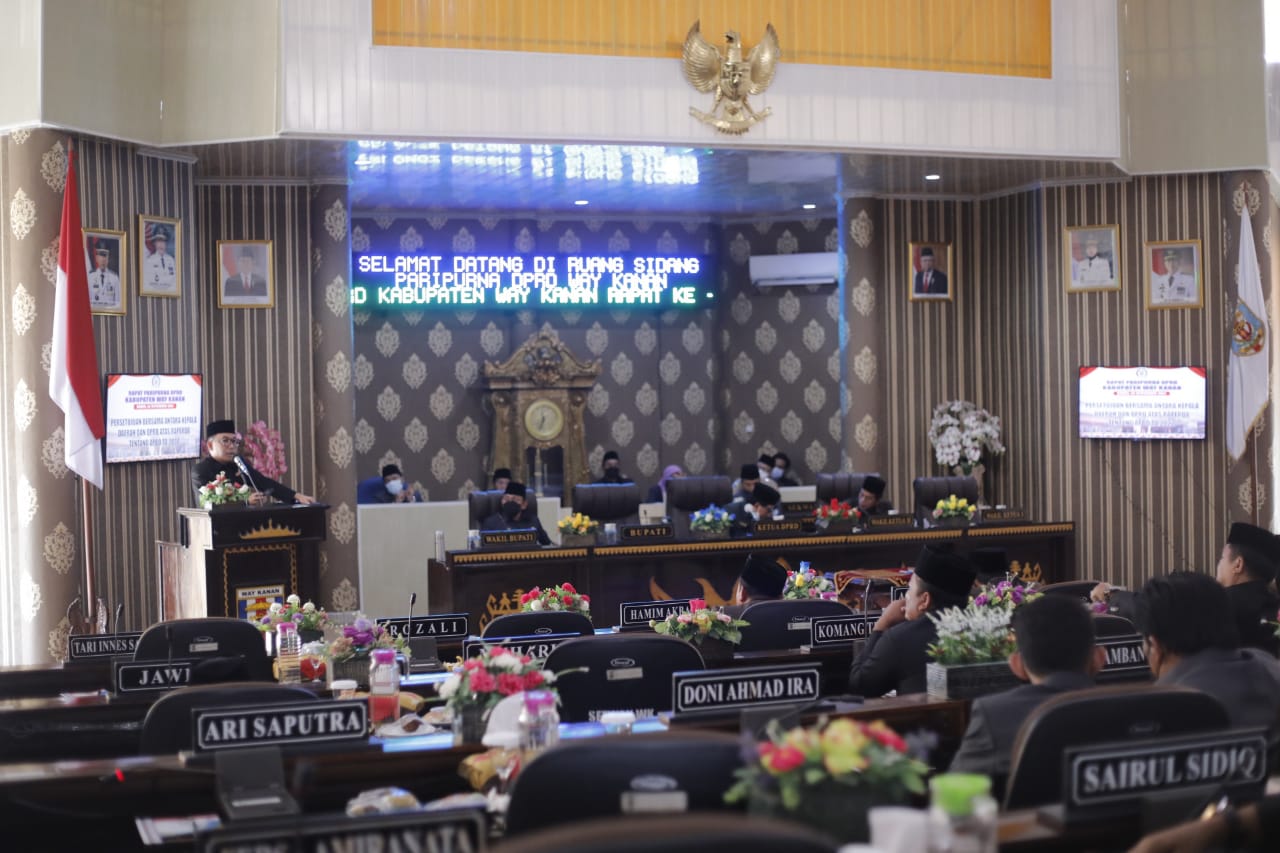 KeizalinNews.Com Waykanan Dewan Perwakilan Rakyat Daerah (DPRD) menggelar rapat paripurna, Dalam Rangka Pengesahan Rancangan APBD Kabupaten Way Kanan Tahun Anggaran 2022