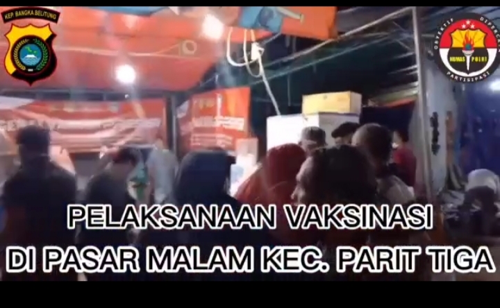 KeizalinNews.Com Bangka Barat Parittiga – Kapolsek Jebus bersinergi dengan stekholder Satgas covid 19 kecamatan parit tiga melaksanakan kegiatan vaksin masal di gerai pasar malam Sabtu 27/11/2021 guna mengejar target herd immunity 100% di kecamatan parit tiga.