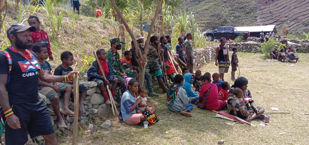 KeizalinNews.com Mulia — Babinsa Koramil 1714-01/Mulia An. Sertu Mustofa,Sertu Arif, Serda Roni dan Serda Mahuse. Melaksanakan kegiatan komsos di kampung Muara Distrik Muara, Komsos yang dilakukan dengan mendatangi warga masyarakat dan Bincang-bincang dengan warga di Honay-honay sekitar kampung Muara dan diselingi dengan memberikan makanan ringan dan gula gula. 29 Nopember 2021.