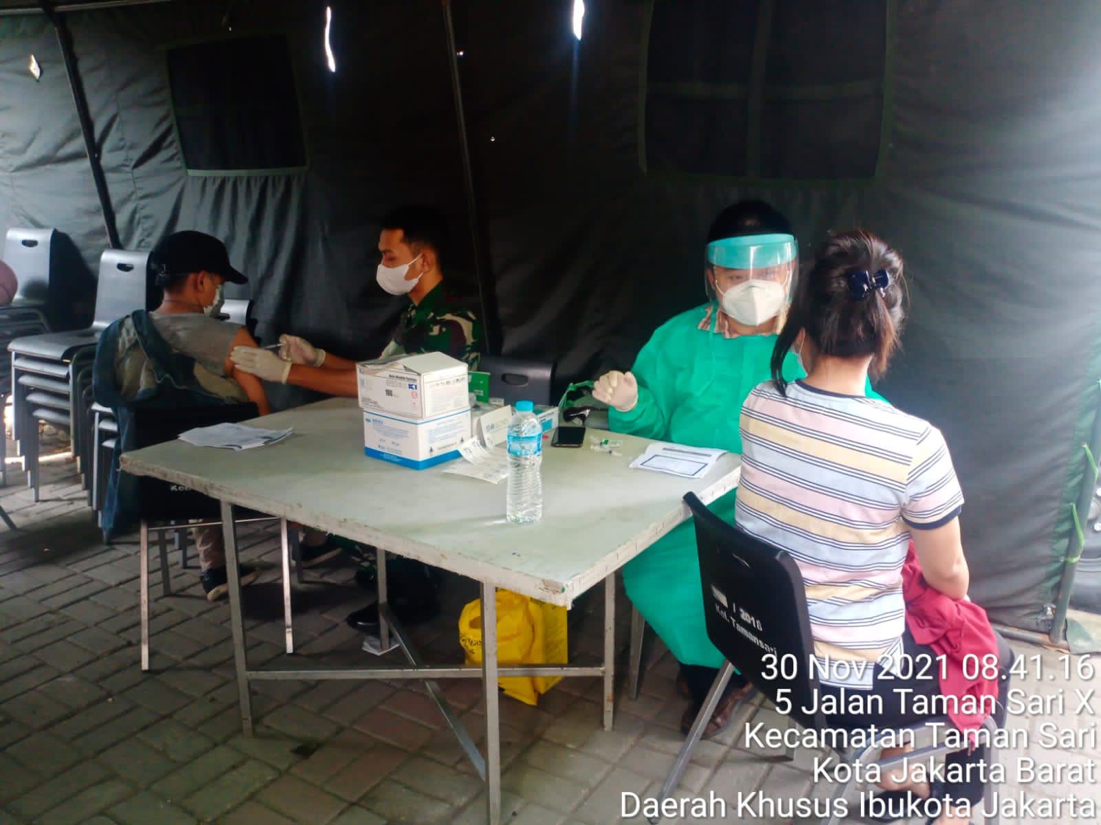 Jakarta KEIZALINNEWS – Bertempat di serbuan vaksinasi Koramil 01/Tamansari Kodim 0503/Jakarta Barat Jalan Mangga Besar VI Utara, Rt. 08/01, Kel.Tamansari, Kec.Tamansari berlangsung percepatan penangan Cocid-19 dalam rangka pemulihan kesehatan masyarakat dengan penanggung jawab Danramil Tamansari, Mayor Inf Zulkarnaen Galib.