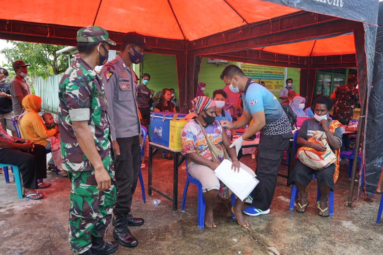 CIPTAKAN HERD IMMUNITY, BIN DIBANTU TNI-POLRI BESERTA TIM DARI DINKES DISTRIK MAKIMI SELENGGARAKAN KEGIATAN VAKSINASI MASSAL