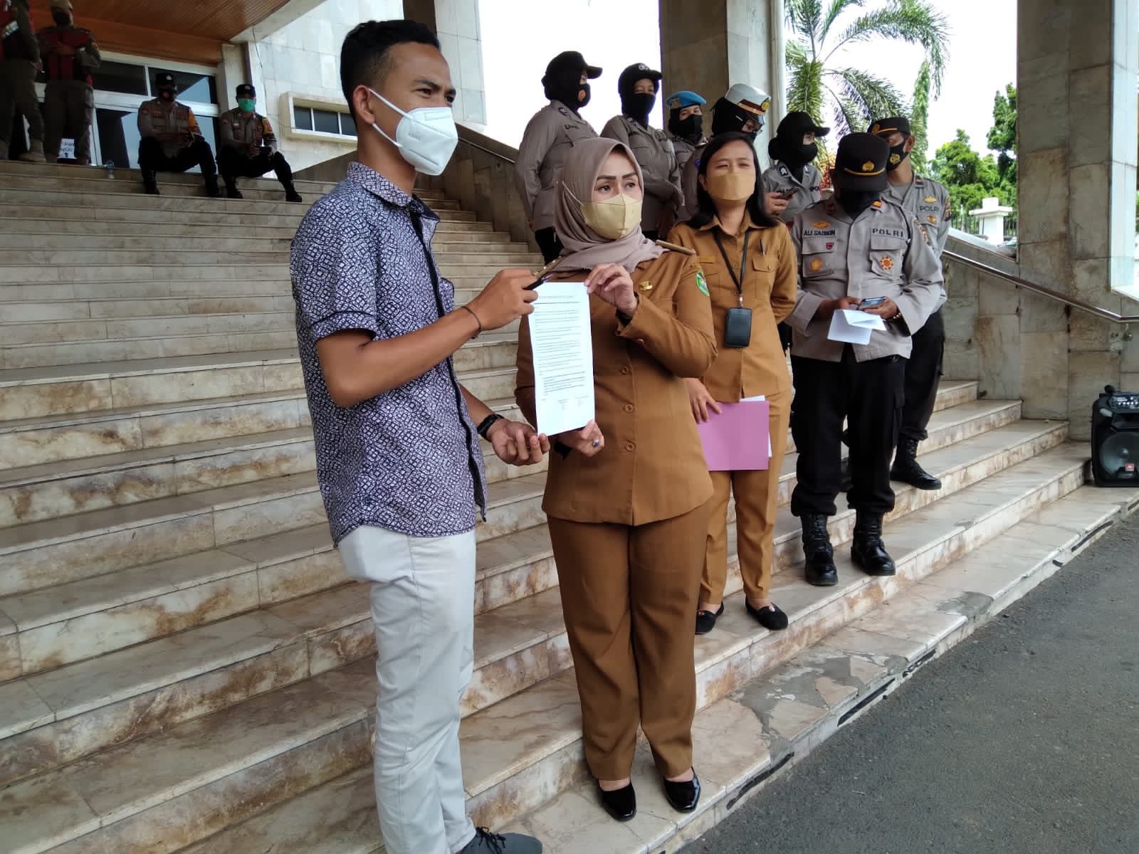 aksi damai di pimpin oleh koordinator aksi Saleh Oktarian dan Indra sebagai koordinator lapangan.