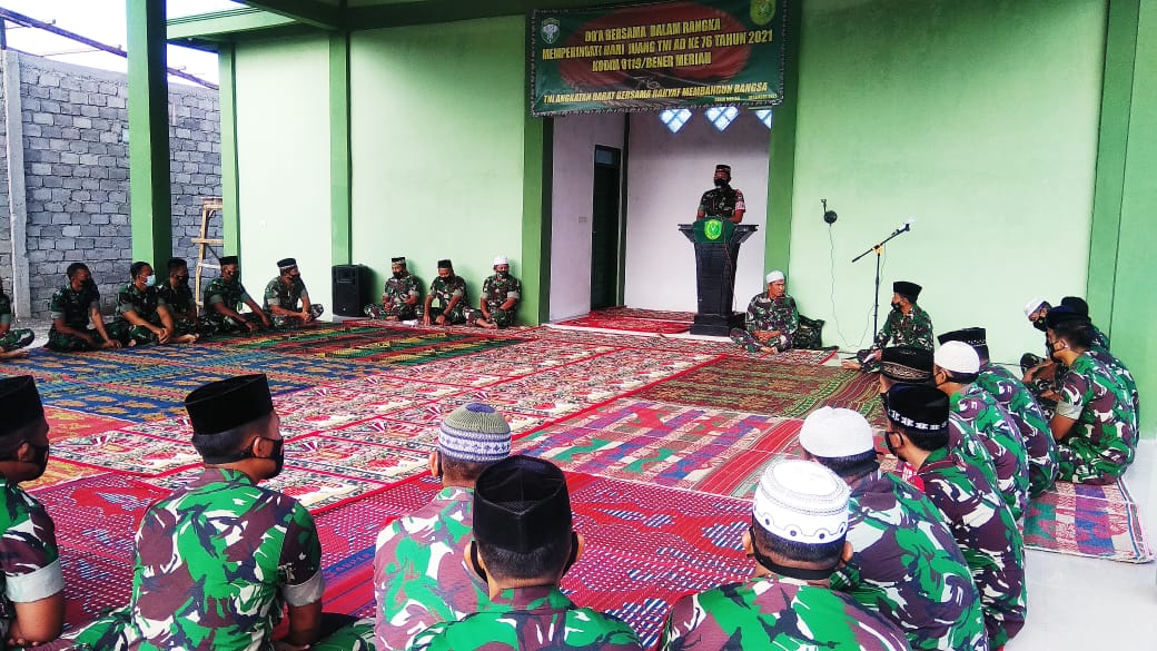 Keizalinnews.com|Redelong – Dalam memperingati Hari Juang TNI-AD ke 76 Tahun 2021, Kodim 0119/BM menggelar Doa bersama di Musholla MaKodim setempat. Jalan Jalur Dua Pacuan Kuda Desa Wonosobo Kecamatan Wih Pesam Kabupaten Bener Meriah. Rabu 15/12/2021