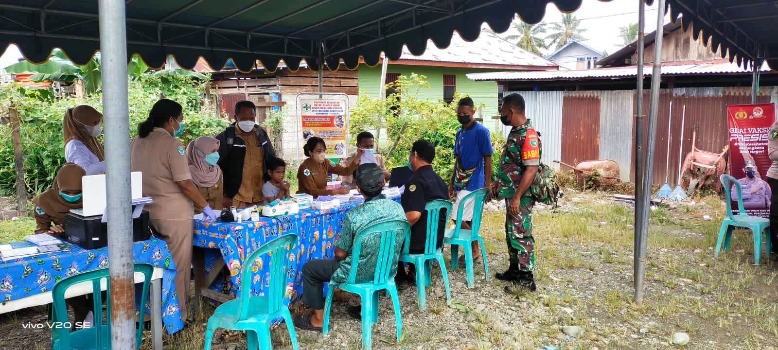 KeizalinNews.com Nabire — Personel Bintara Pembina Desa (Babinsa) Koramil 1705-01/Nabire Serka Puwanto Parjo melaksanakan kegiatan pengamanan sekaligus monitoring penyuntikan Vaksin COVID-19 Suntikan Dosis I dan II bertempat di depan Pasar Kelurahan Bumiwonorejo Distrik Nabire.
