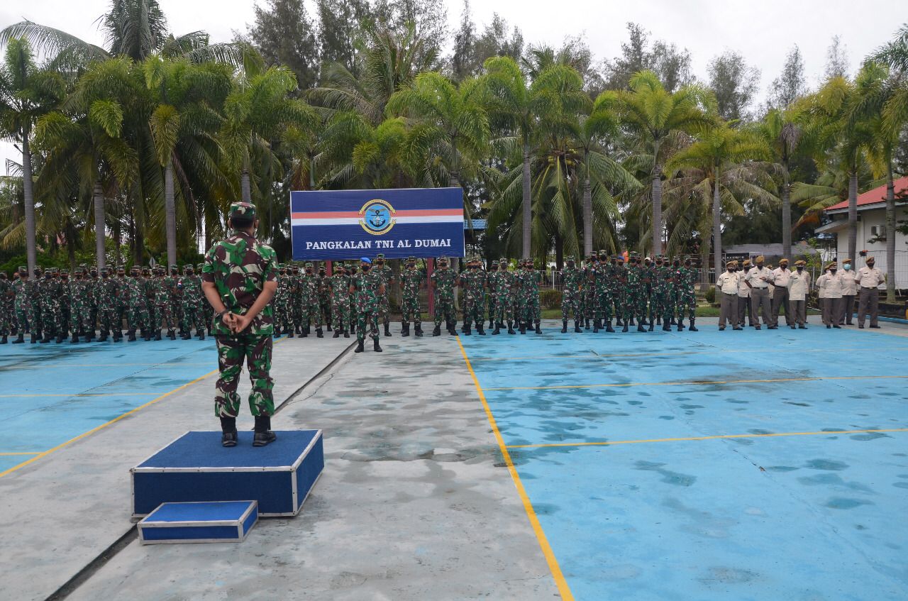 KeizalinNews.com Dumai — Komandan Lanal Dumai Kolonel Laut (P) Himawan, MMSMC pimpin Apel Khusus dalam rangka pengecekan personel pasca perayaan Tahun Baru 2022, apel dilaksanakan di Lapangan Apel Mako Lanal Dumai, Jalan Yos Sudarso No. 01, Kelurahan Buluh Kasap, Kecamatan Dumai Timur, Kota Dumai, Senin (03/01/2022).