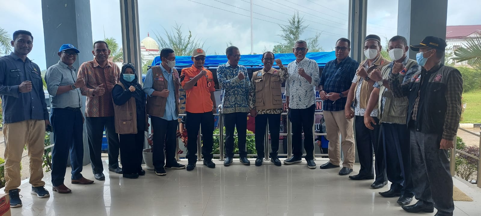 Sekda pijay yang didampingi Assisten I Abubakar S.Sos, Inspektur Jamian, Kadis DPMG Hasbi, Kadishub Dahlan, Kabag Humpro Fakhri Abdul Muthalib serta sejumlah personel Pemkab Pidie Jaya dari Dinas Sosial dan BPBD.