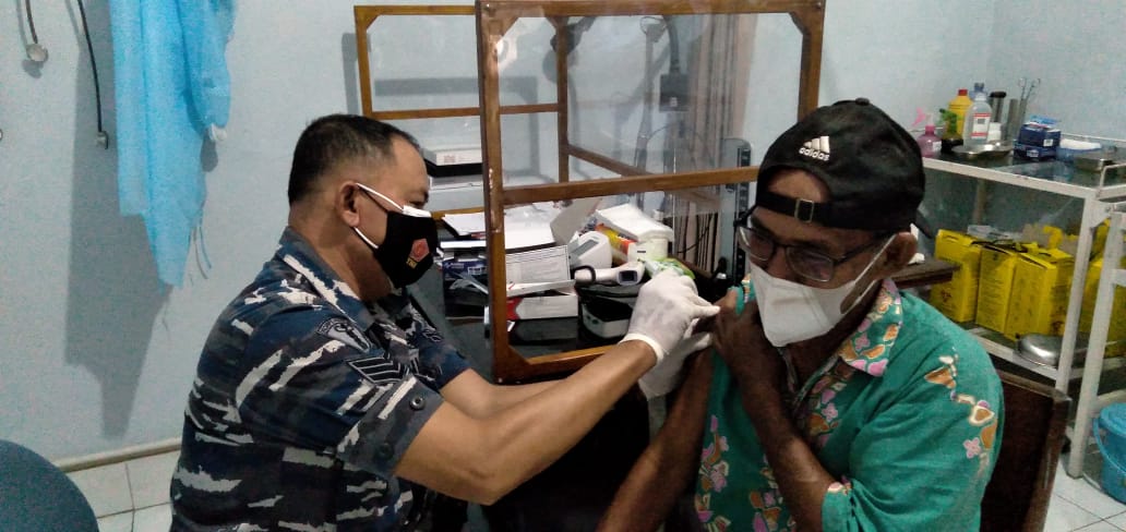 KeizalinNews.com Cirebon — Lanal Cirebon sebagai salah satu Jajaran yang berada di Pangkalan Utama TNI AL III Jakarta, terus mengupayakan dan mendukung program pemerintah dalam pelaksanaan vaksin nasional dengan menyasar melalui serbuan vaksin kepada masyarakat Pesisir Pantai Utara yang di motori oleh Tenaga Kesehatan dari Balai Pengobatan (BP) Lanal Cirebon, Kamis (06/01/2022).