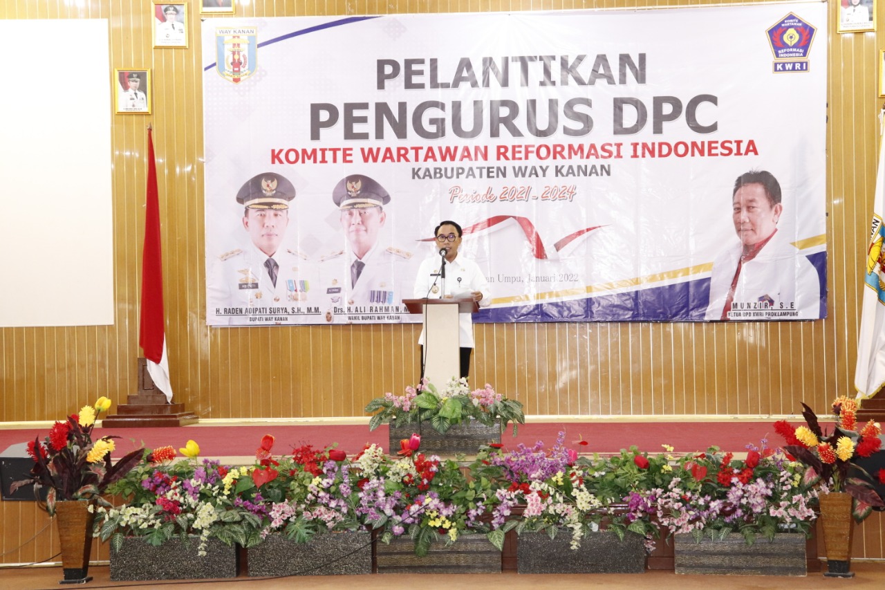 Bupati Raden Adipati Surya Juga mengucapkan selamat atas dilantiknya pengurus DPC Komite Wartawan Reformasi Indonesia (KWRI) Way Kanan periode 2021-2024,harapan Raden Adipati semoga dapat menjalankan tugas dan tanggung jawab membawa organisasi kearah yang lebih baik, Untuk itu, insan pers dituntut untuk semakin kreatif dan profesional dalam menyajikan berita, dengan berpegang teguh pada etika jurnalistik, agar para wartawan berada di koridor yang tepat.