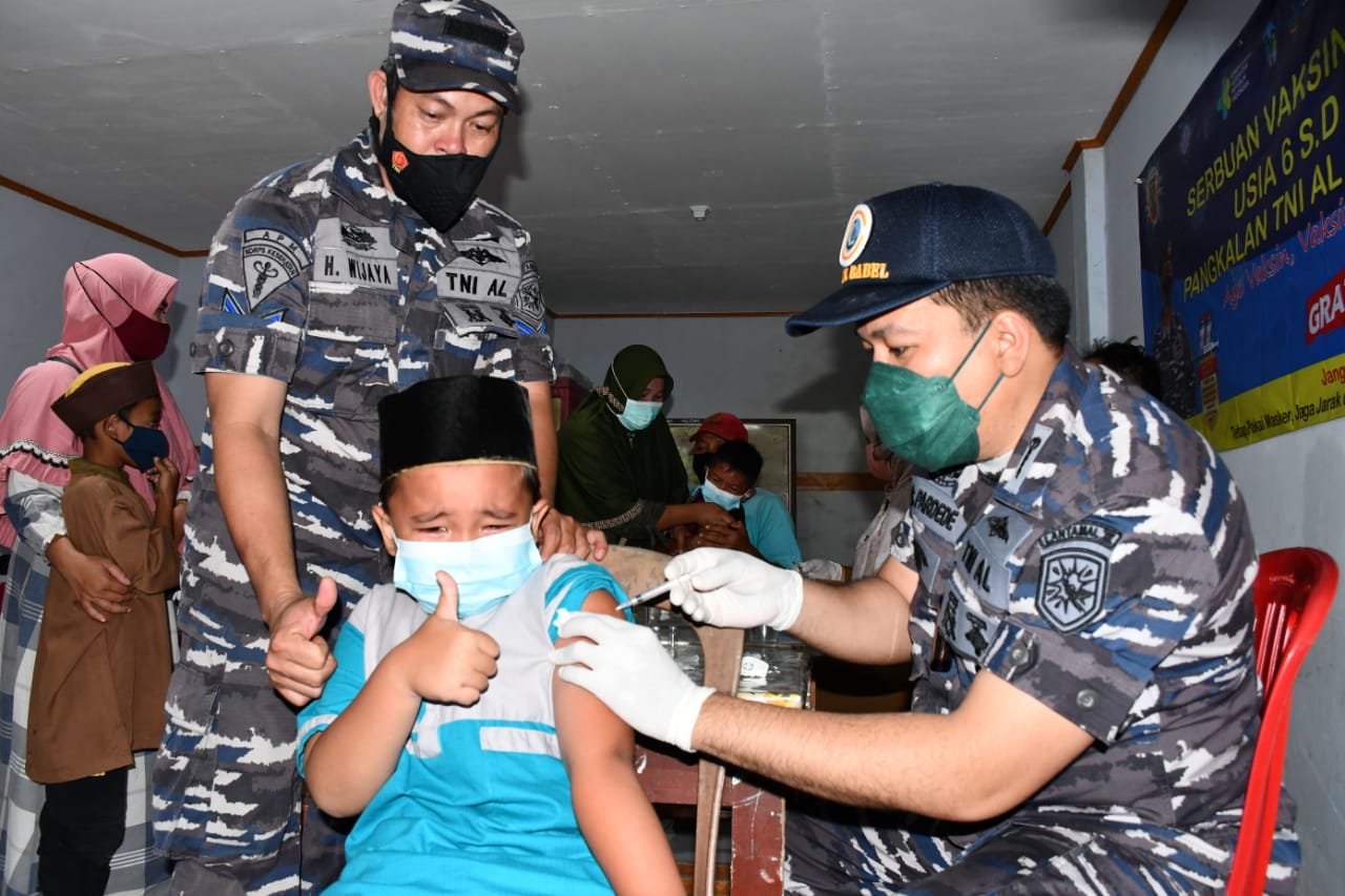 Serbuan vaksinasi maritim akan terus dilaksanakan oleh Tim kesehatan Lanal Babel, dimana merupakan perintah langsung dari KASAL Laksamana TNI Yudo Margono agar setiap Pangkalan mendukung program pemerintah melaksanakan serbuan vaksin kepada masyarakat maritim, khususnya anak-anak sekolah usia 6 sampai dengan 12 tahun guna menyukseskan program pemerintah dalam percepatan pemutusan mata rantai Covid-19. (Hera)