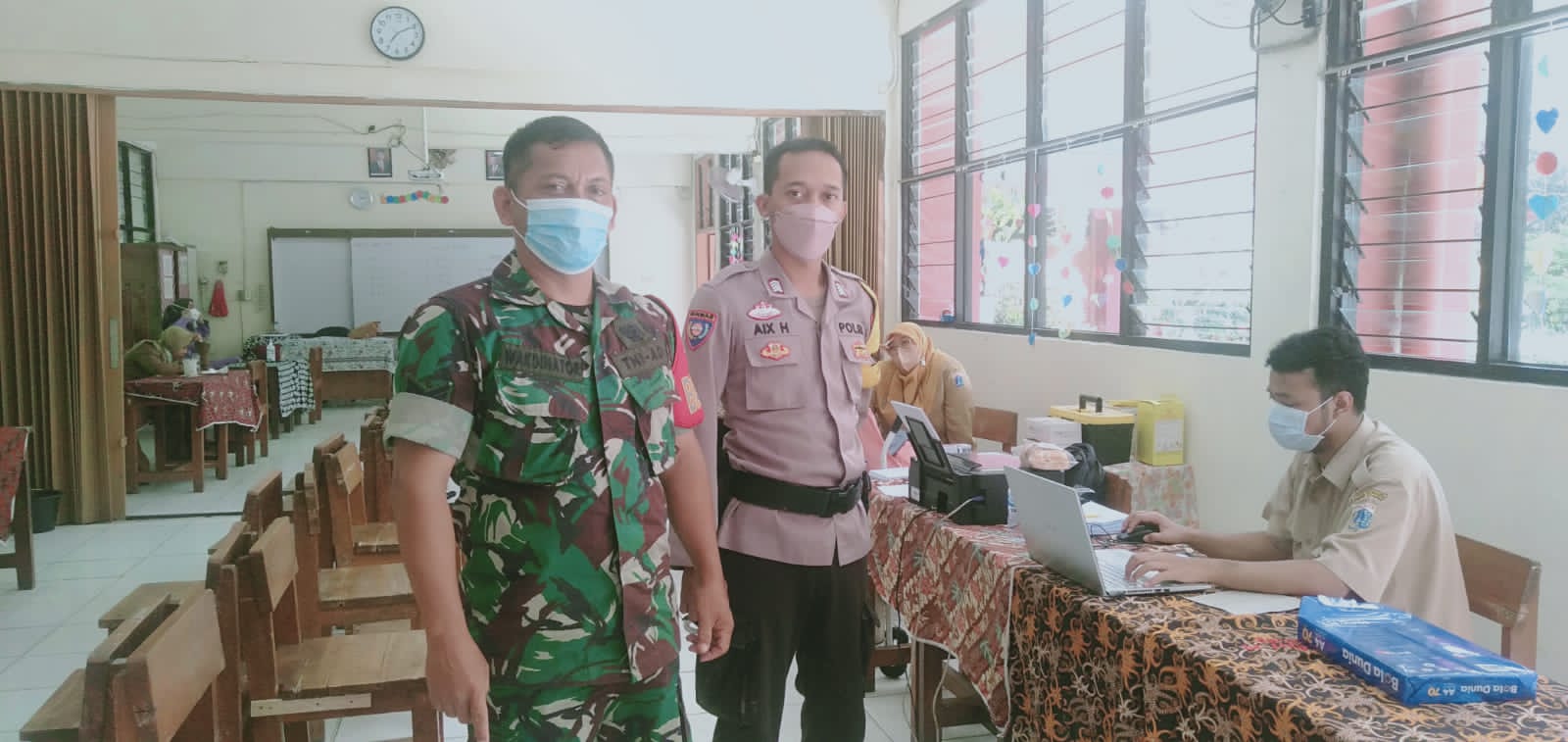 “Giat vaksinasi dengan 8 personil kesehatan gabungan dari Puskesmas yang ada di tamansari yang di pimpin dr Sherla dengan penanggung jawab dr. Syukur.”ucap Serma Wadiknator. (Sumber Koramil 01/TS).
