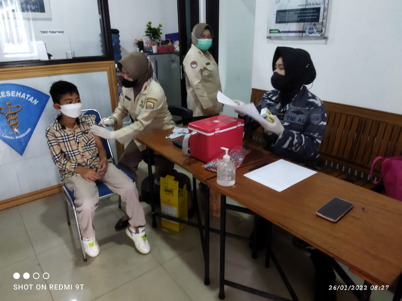 KeizalinNews.com Bandung — Tenaga Kesehatan (Nakes) Pangkalan TNI AL (Lanal) Bandung terus mendukung pelyanan Vaksinasi kepada masyarakat Maritim dan masyarakat umum mulai Lansia, Dewasa dan anak-anak usia 6-11 tahun dengan posko vaksin di Mako Lanal Bandung, Jalan Aria Jipang No. 8 Kota Bandung, Rabu (26/01/2022).