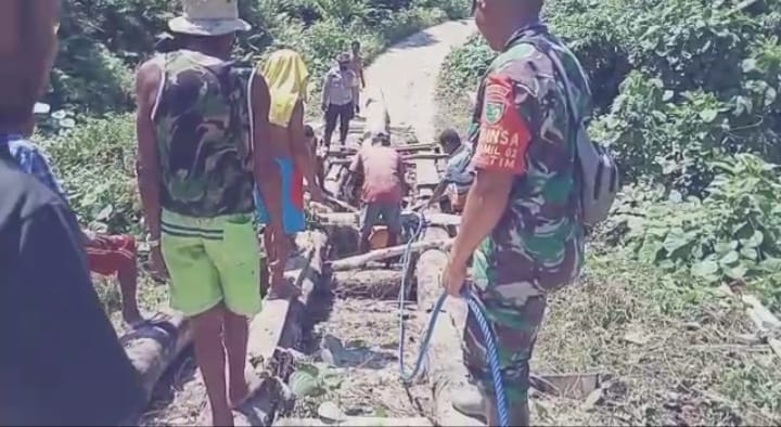 Pada kegiatan gotong royong untuk perbaikan salah satu jembatan yang susah mulai rusak di wilayah binaannya Babinsa Sertu Patrik Dudo hadir di tengah masyarakat untuk membantu percepatan perbaikan jembatan yang dimana ini adalah fasilitas umum yang memang perlu di perhatikan untuk akses penghubung transportasi masyarakat dalam beraktifitas sehari-hari.