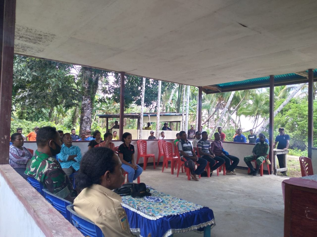 KeizalinNews.com Yapen — Dalam rangka menjaga dan memelihara keamanan serta ketertiban masyarakat diwilayah binaannya, Sersan Satu Jhonias M. Riyoli Babinsa Koramil 1709-02/Yapen Timur Kodim 1709/Yawa bersama-sama aparat kampung dan para tokoh warga, menyelesaikan pertikaian antar warga di Balai Kampung Woinsupi Distrik Yapen Timur Kab. Kepulauan Yapen, Selasa (01/02/2022).