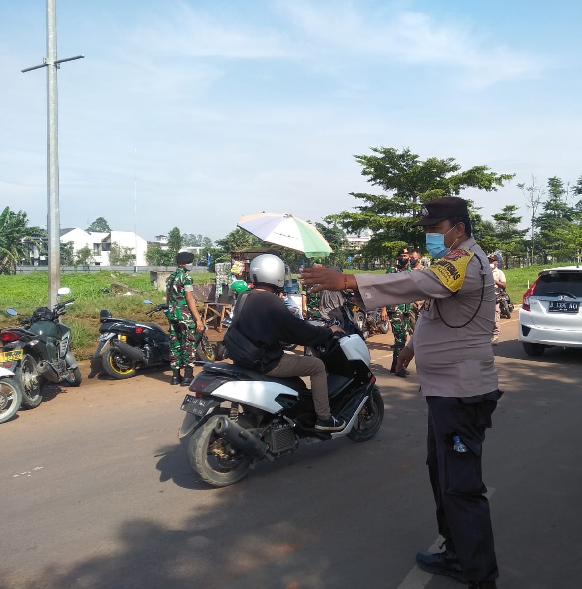 Operasi PPKM level 2 dalam rangka penegakan protokol kesehatan untuk menyukseskan program Pemberlakuan Pembatasan Kegiatan Masyarakat (PPKM) darurat level 2 di Wilayah Koramil 03/Legok, Kodim 0510/Trs.