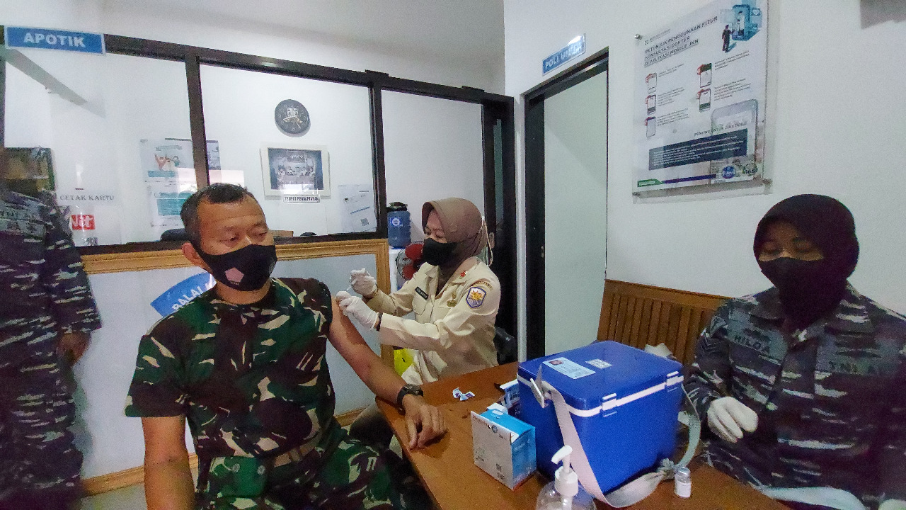 KeizalinNews.com Bandung — Tenaga Kesehatan (Nakes) Pangkalan TNI AL (Lanal) Bandung terus mendukung pelyanan Vaksinasi kepada Keluarga Besar TNI (KBT) dan masyarakat Maritim mulai dari anak usia 6-11 tahun dan Dewasa bertempat di Markas Komando (Mako) Lanal Bandung, Jalan Aria Jipang No. 8 Kota Bandung, Rabu (09/02/2022).