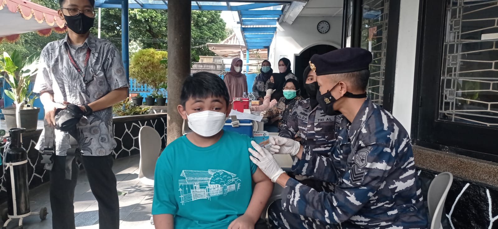 KeizalinNews.com Bandung —Serbuan vaksinasi maritim yang digelar Pangkalan TNI AL (Lanal) Bandung selain untuk usia remaja dan dewasa juga mulai menyasar anak-anak Sekolah Dasar usia 6 – 11 tahun di SD Edu Global Jl. Citarum No.35, Citarum, Kec. Bandung Wetan, Kota Bandung, Jumat (11/02/2022).