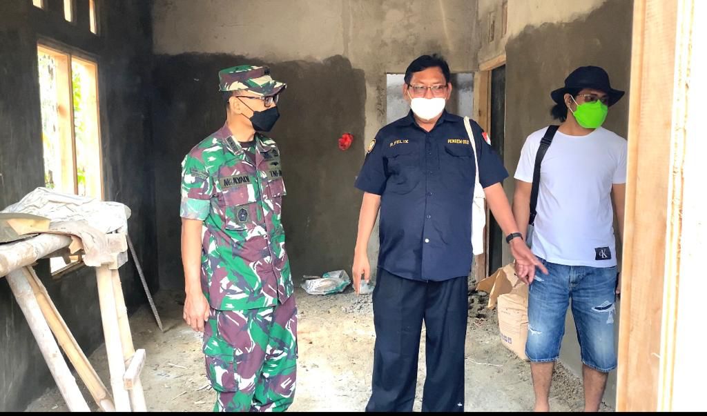 KeizalinNews.com Tangerang —Brigjen TNI Rano Tilaar Danrem 052/WKR yang di wakili Kolonel Arm Mulyadi, Kasiter 052/WKR, pada hari Jumat, 11 Februari 2022, mengunjungi pembangunan rumah layak huni bagi Bapak Juned di Desa Ciakar – Kecamatan Panongan – Kabupaten Tangerang, Banten.