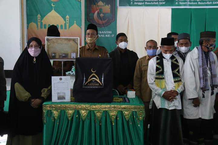 Keizalinnews.com|Redelong- Setelah sebelumnya di pamerkan di Pondok Pasantren Ummahatul Mukmin, Kampung Karang Rejo, hari ini artefak baginda Rasulullah SAW di pamerkan kembali untuk umum di Pondok Pasantren Bustanul Arifin Putra, Kampung Hakim Tunggul Naru, Kecamatan Bukit. Senin (14-02-2022)