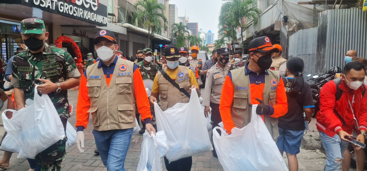 “Sekitar pukul 15.00 Wib Kepala BNPB beserta rombongan tiba di Pasar Baru. Kedatangan mereka meninjau agenda pembagian masker kepada warga untuk mengantisipasi penyebaran Covid 19 yang menurut data penyebarannya cukup meningkat dari hari ke hari”, tutur Danramil 02 Mayor Kav Dian Kriswijaya kepada media.