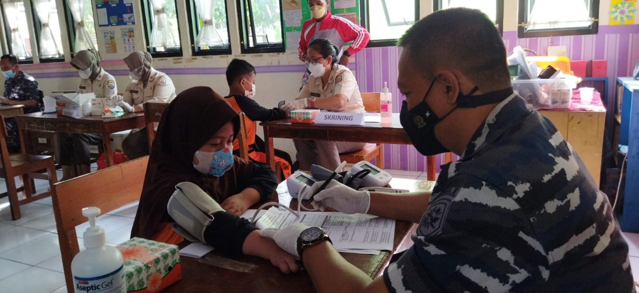 Dalam mensukseskan kegiatan vaksinasi nasional tersebut sebanyak 418 Anak Usia 6 – 11 tahun SD Sumampir Kota Cilegon kembali tervaksin oleh serbuan Vaksin Lanal Banten menggunakan vaksin sinovak.