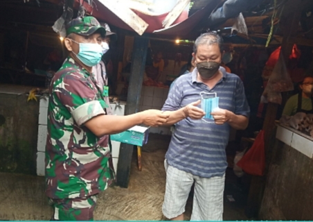 Antisipasi dan Memutus Mata Rantai Covid-19, Babinsa Koramil 01/TS Gelar PPKM Level 3 dan Bagi Masker