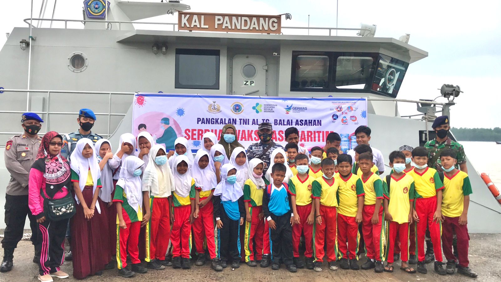 “Tampak antusiasme para nelayan dan anak-anak sekolah untuk mengikuti Vaksinasi Covid-19, selain vaksin, anak- anak sekolah diperkenalkan kebaharian dan alutsista TNI AL. Untuk mempermudah transportasi dari sekolah ke sentra vaksin, kami sediakan bus TNI AL sebagai antar jemput sedangkan para nelayan di jemput dengan Patkamla maupun Size Rider Lanal TBA ” kata Danlanal TBA Letkol Laut (P) Aan Prana Tuah Sebayang saat meninjau langsung kegiatan vaksin. Rabu, (23/02/2022).
