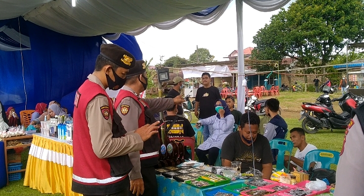KeizalinNews.com | Simalungun – Perketat Pelaksanaan Protokol Kesehatan Dalam Rangka Antisipasi Penyebaran Covid-19, Personil Polres Simalungun beri himbauan protokoler kesehatan di MTQ ke 48, serbalawan Kecamatan Dolok Batu Nanggar, Kabupaten Simalungun, Sabtu (26/2/2022).