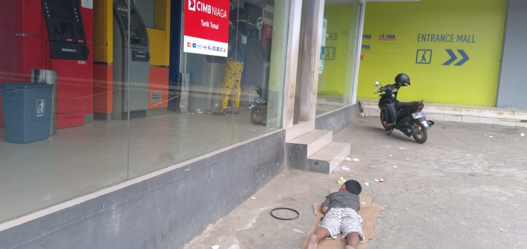KeizalinNews.Com -Kota Madya Kendari-Keberadaan para anak lelaki yang Minta-minta uang dan tidur di dalam ruangan Anjungan tunai mandiri (ATM) tepatnya di depan halaman parkir mall rabam,Kota Kendari,Provinsi sulawesi tenggara.
