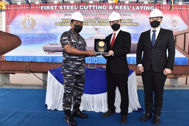 Turut hadir dalam acara First Steel Cutting dan Keel Laying PC-60 di PT. KAS (Karimun Anugerah Sejati) antara lain Asrena Kasal Laksda TNI Abdul Rasyid K., Aslog Kasal Laksda TNI Puguh Santoso, Kadisadal Laksma TNI Maman Rohman, Danlantamal IV Laksma TNI Dwika Tjahya Setiawan, Danguskamla Koarmada I, Laksma TNI Haris Bima Bayuseto, Sekdislaikmatal Kolonel Laut (T) Sa’ban Nur Subkhan, Danlanal Batam, Kolonel laut (KH) Farid Maruf, dan Direktur PT. KAS bpk. Frengky. (Hera)