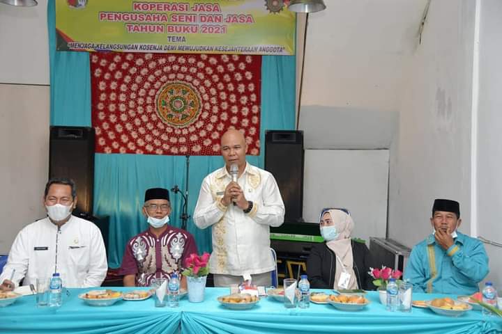 Keizalinnews.com|Redelong- Wakil Bupati Dailami hadiri dan buka rapat anggota Tahun ke-1 Koperasi Jasa Pengusaha Seni dan Jasa tahun buku 2021 yang bertema menjaga, kelangsungan Kosenja demi mewujudkan kesejahteraan anggota di Aula Blending Café Kampung Uring, Kecamatn Bukit. Jum’at (04-03-2022)