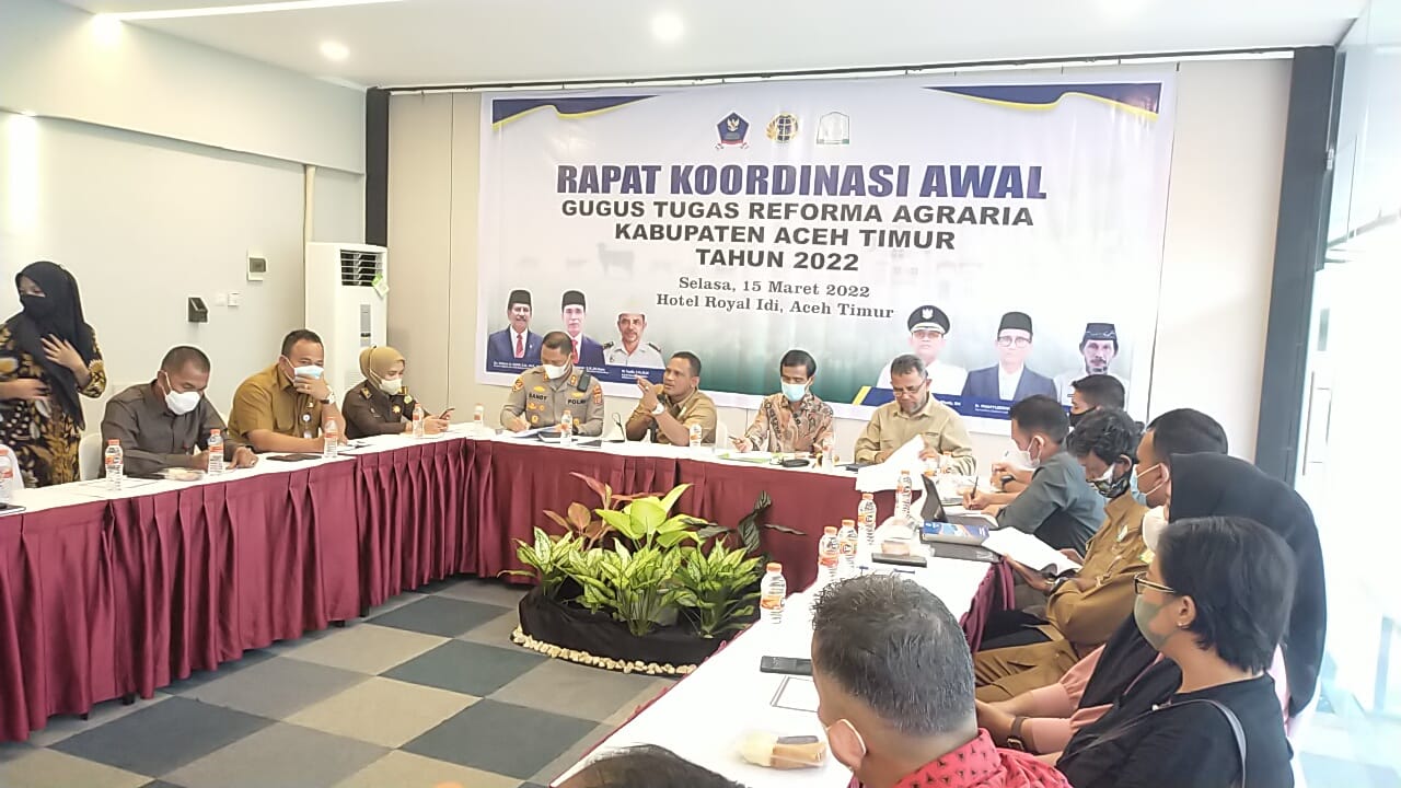 KeizalinNews Aceh Timur – Pelaksanaan reforma agraria tahun 2022 di Kabupaten Aceh Timur dimulai dengan dilaksanakannya Rapat Koordinasi Awal Gugus Tugas Reforma Agraria (RAKOR I GTRA) Kabupaten Aceh Timur.