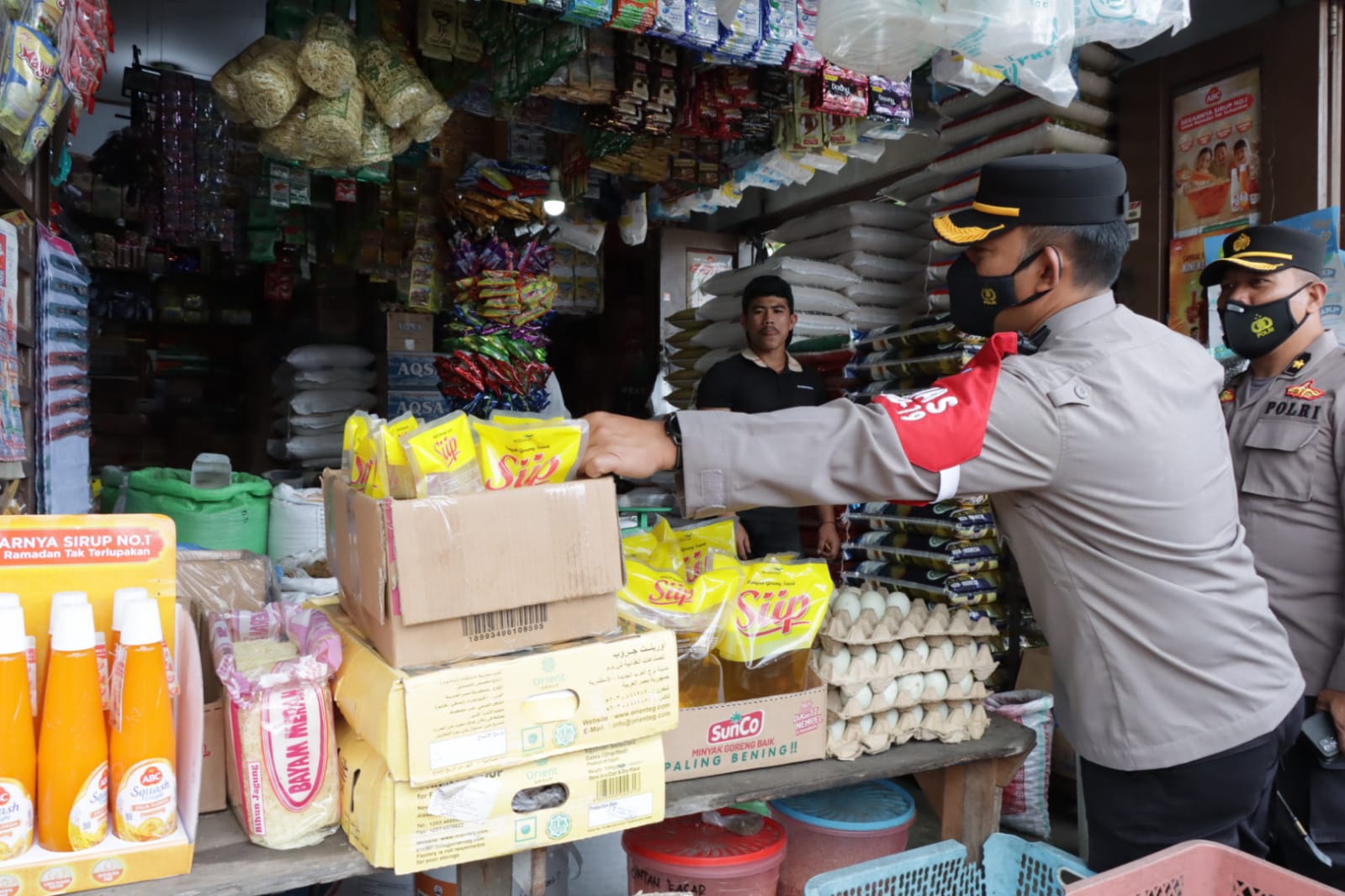 Selain itu Kapolres juga melakukan pemantauan langsung di Pusat Pasar Tradisional Paya Ilang yakni pada Toko Grosir/ kelontong .