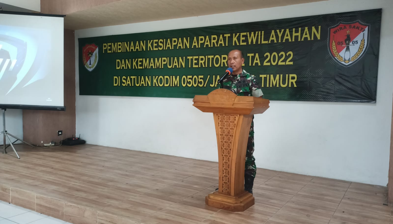 Dandim 0505/JT Kolonel Inf Persada Alam diwakili Kasdim Letkol Inf Ali Cahyono S.Kom mengatakan, kegiatan pembinaan Sisrendal Binter dilaksanakan dengan tujuan untuk meningkatkan kemampuan Apkowil dlm menyelaraskan sisrendal binter untuk pertahanan dengan Rencana Umum Tata Ruang oleh pemerintah daerah.