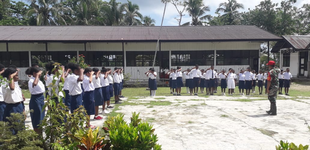 KeizalinNews.com Yapen — Babinsa Sertu Agus L Ompusunggu Koramil 1709-02/Yepen Timur berikan pelatihan PBB kepada siswa-siswi SMP Negeri Kurudu. Bertempat di lapangan sekolah tersebut, Pelatihan PBB yang diberikan dalam rangka peningkatan kemampuan siswa-siswi serta menanamkan disiplin dan karakter sejak dini sehingga dapat melahirkan generasi bangsa yang berkualitas. Kampung Kurudu, Distrik Pulau Kurudu, Kab. Kepulauan Yapen. Kamis, (24/03/2022).