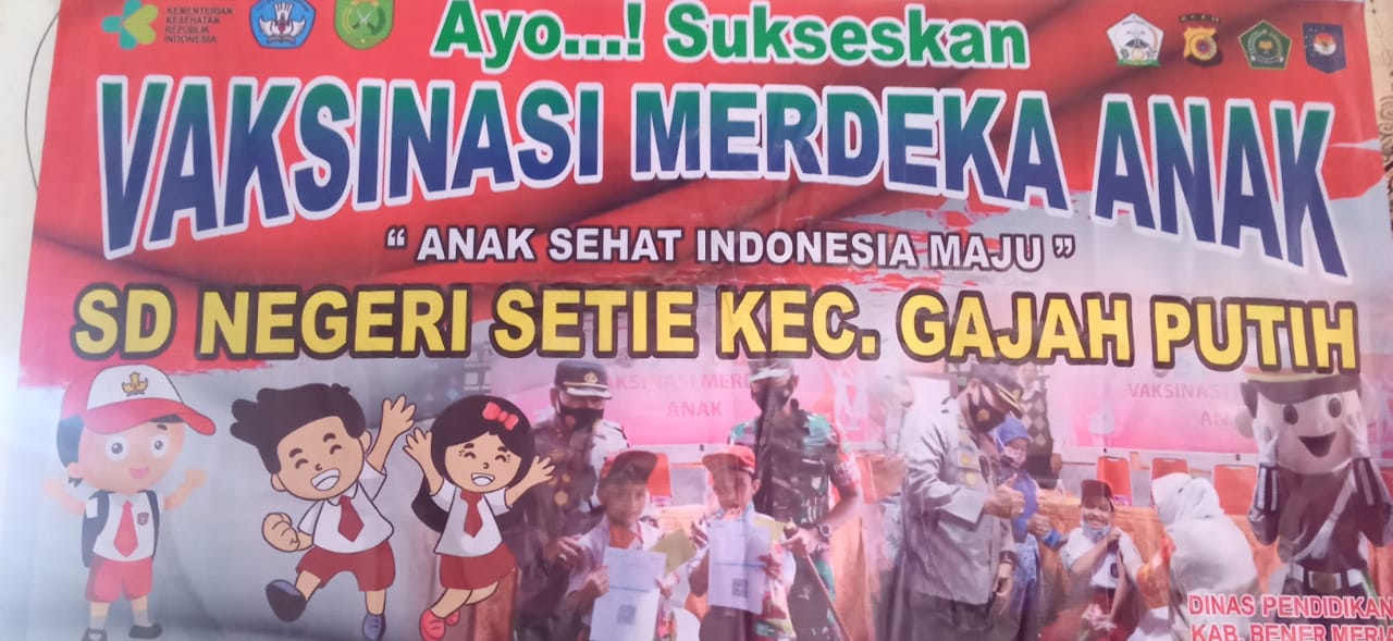 Pelaksana,an kegiatan Vaksinasi untuk (SD) Negeri Setie, Kecamatan timang gajah Kabupaten Bener meriah untuk anak-anak usia (6 hingga 11 tahun) di mulai Dari pukul 09:00 WIB sampai selesai.
