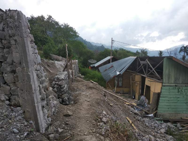 Pasalnya pekerjaan pembangunan Tembok penahan tanah tampak di tinggal rekanan dan enggan di perbaiki lagi dan longsoran Pekerjaan tersebut menghantam sebuah rumah di dekatnya dan menghancurkan bagian kanan rumah warga tersebut.