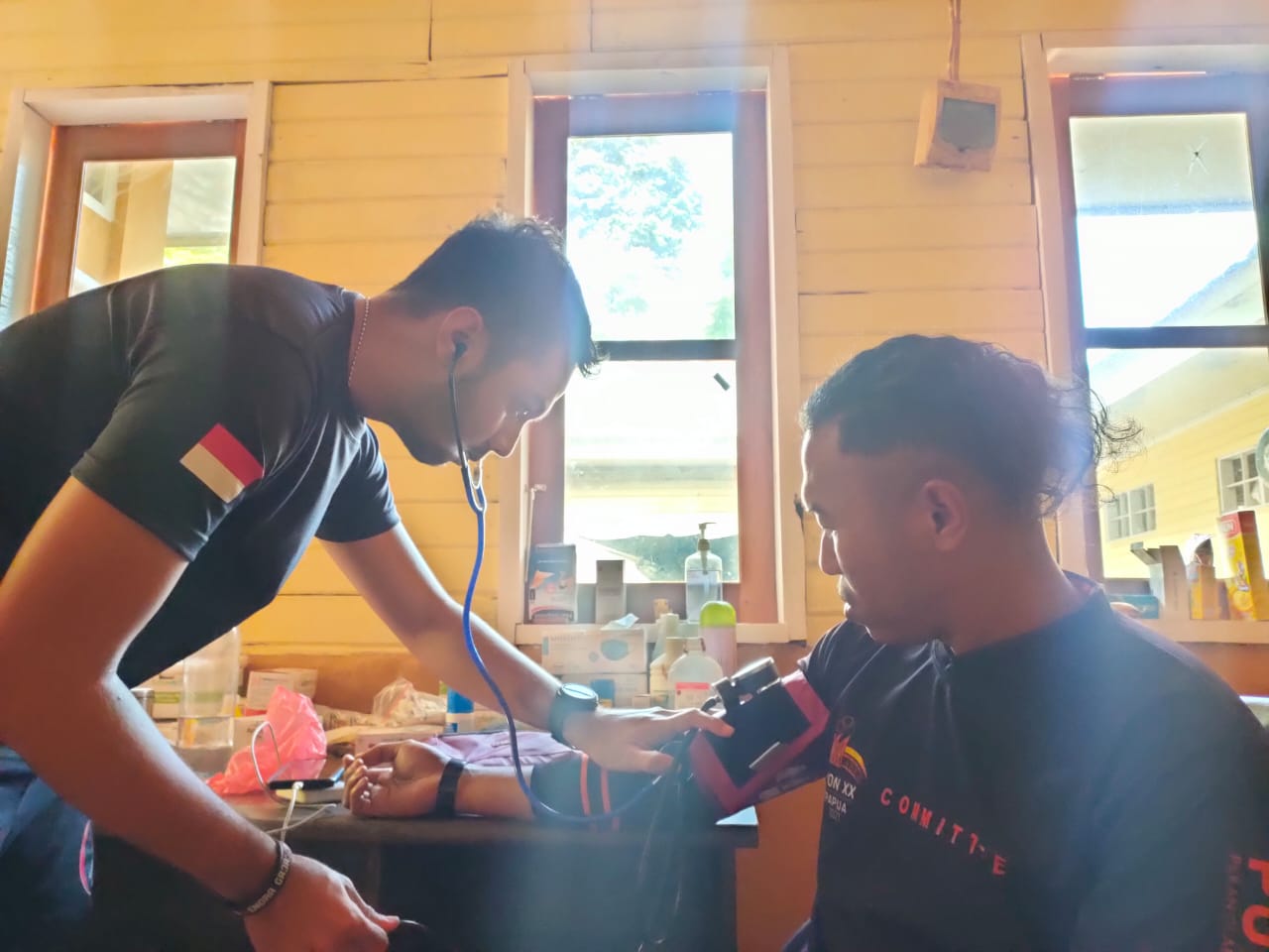 Hasil pemeriksa diterapkan setiap anggota Personel Gakkum cek tekanan darah dan anamnesa yang dialami Dicky 23 tahun dirasakan deman menggigil, mual, diagnosa malaria tropika .