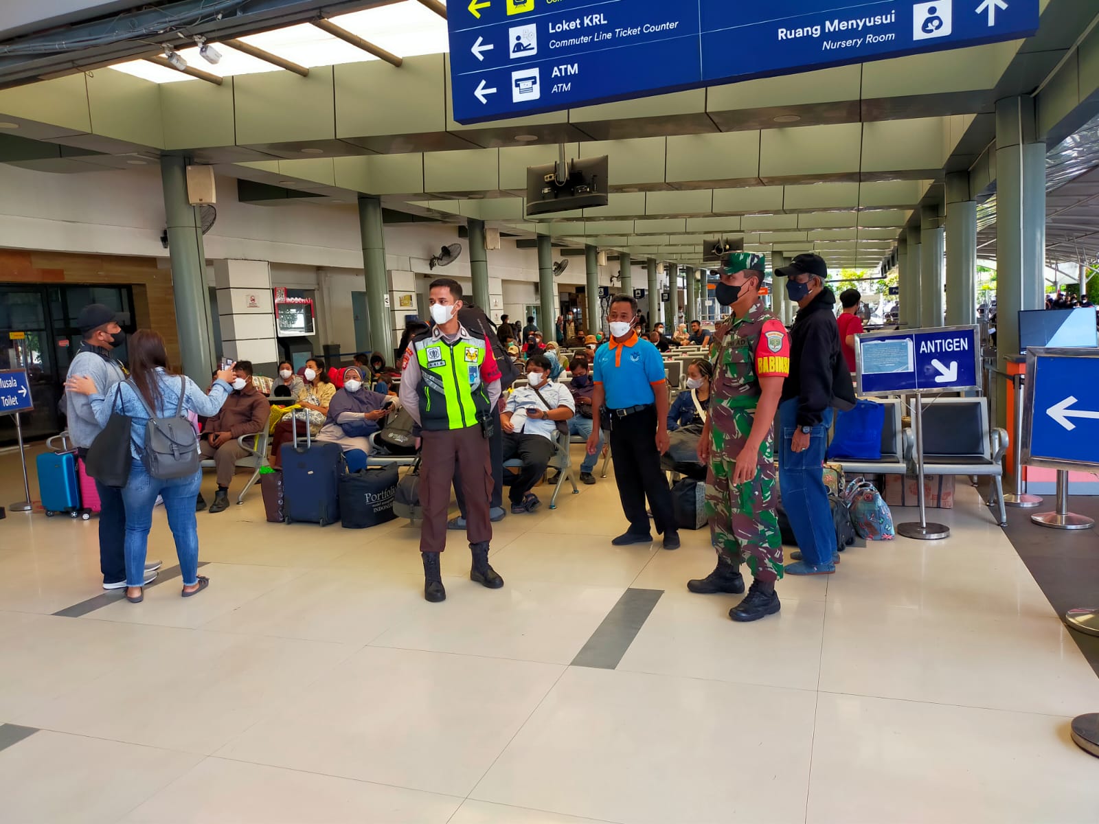 Babinsa Koramil 03 Senen Monitoring PPKM level 2 di Stasiun Senen