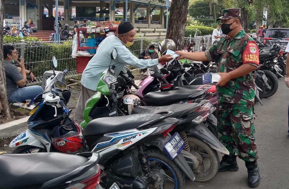 Babinsa Koramil 06/KD Kodim 0503/JB Tetap Gencar Bagi Masker Meski PPKM Turun Level 2