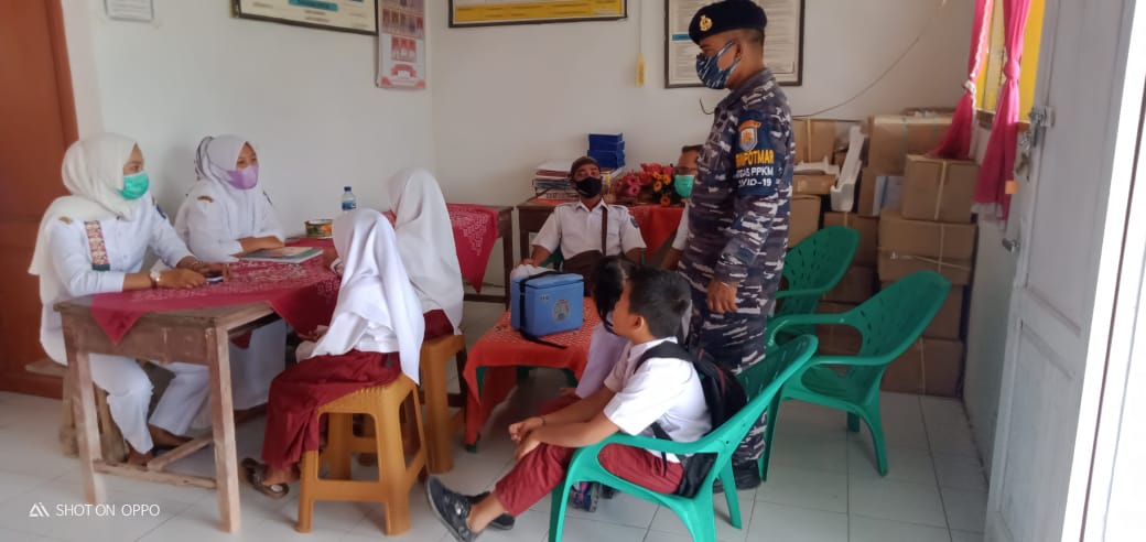 Dalam pelaksanaan vaksin yang dikawal Babinpotmar Serda Syahbuddin telah divaksin 22 orang anak sekolah dasar dengan rincian dosis 1 sebanyak 15 orang dan dosis 2 sebanyak 7 orang jenis Sinovac.
