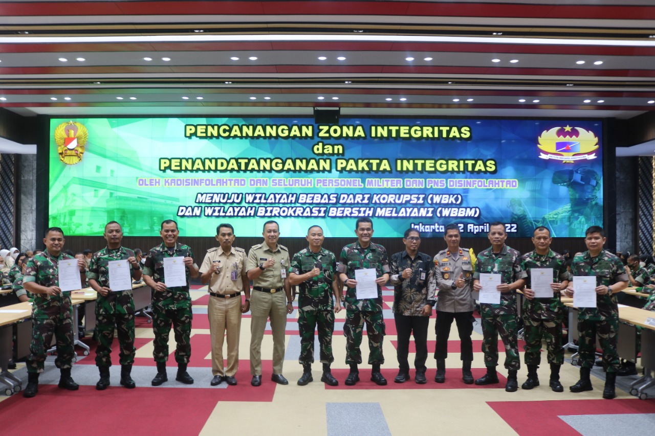 “Saya selaku pimpinan Disinfolahtad memerintahkan kepada seluruh anggota untuk tidak melakukan korupsi sekecil apapun dalam pelaksanaan pekerjaan dan menyatakan bahwa kami terbebas dari korupsi dengan menandatangani pakta integritas secara bersama-sama,” tagasnya.