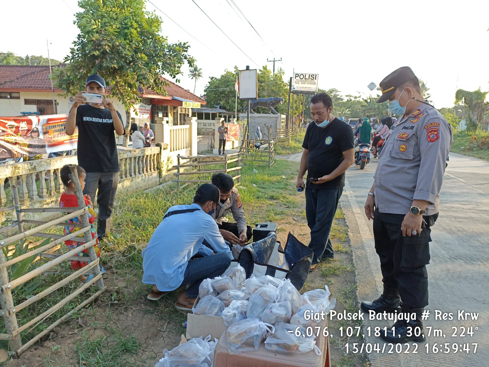 alhamdulilLah, bersama-sama dengan komunitas BERITA SEKITAR BATUJAYA BSB kami membagi-bagikan makanan takjil kepada para pengendara yang melintas di jalan Raya batujaya tepatnya di depan kantor Kapolsek batu jaya ” ujar AKP.MARSAD.SH.MH