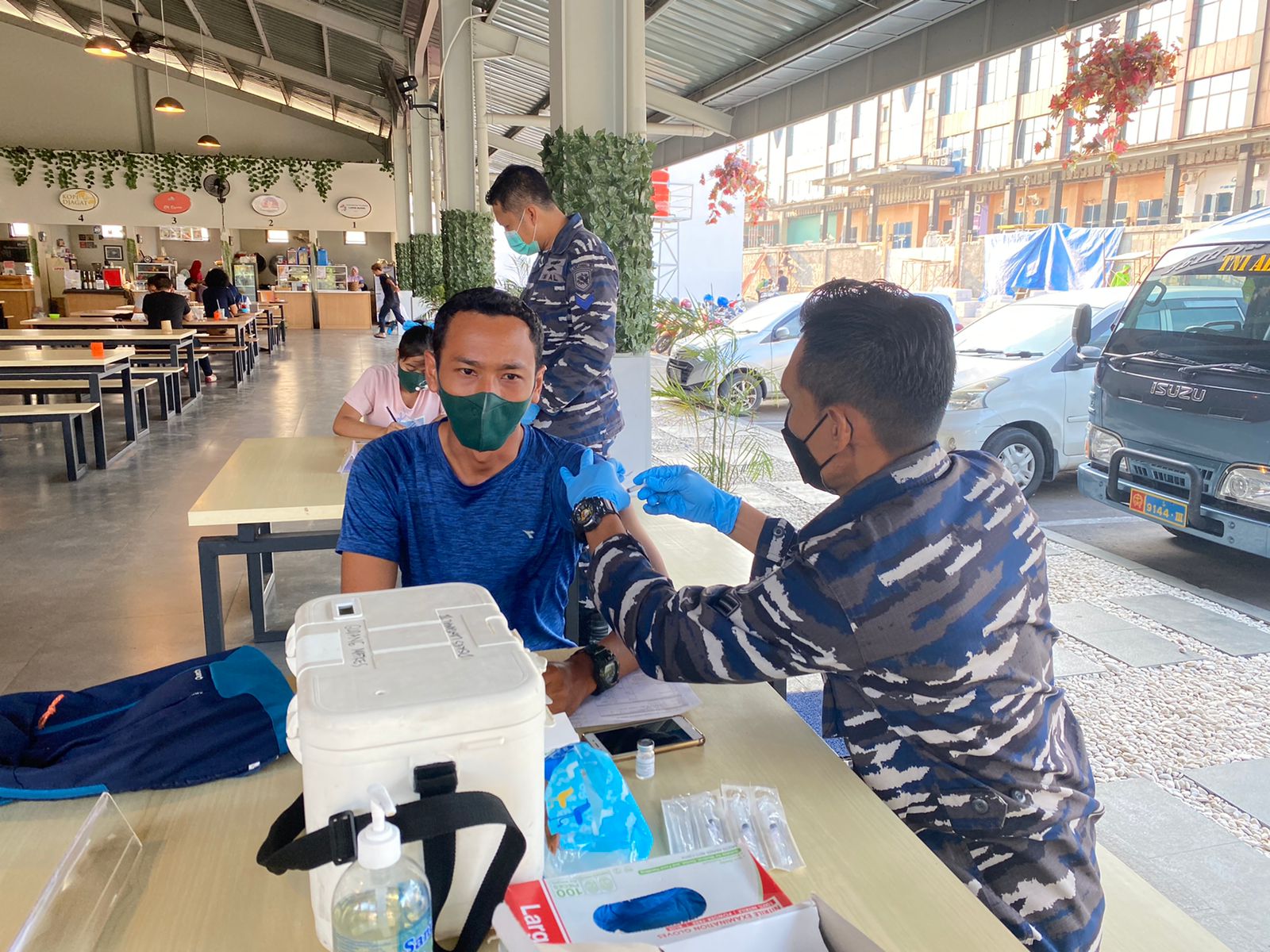 KeizalinNews.com Jakarta — Penegakan protokol kesehatan dan percepatan vaksinasi merupakan langkah strategis yang bisa membantu mengendalikan angka penyebaran kasus Covid-19, oleh karena itu pangkalan Utama TNI AL III Jakarta melalui Diskes Lantamal III terus melaksanakan serbuan Vaksinasi di bulan Ramadhan di sore hingga malam hari untuk Masyarakat umum , keluarga besar TNI, dan militer di Foodcort Kodamar, Sunter Jakarta Utara. Minggu (17/04/2022).