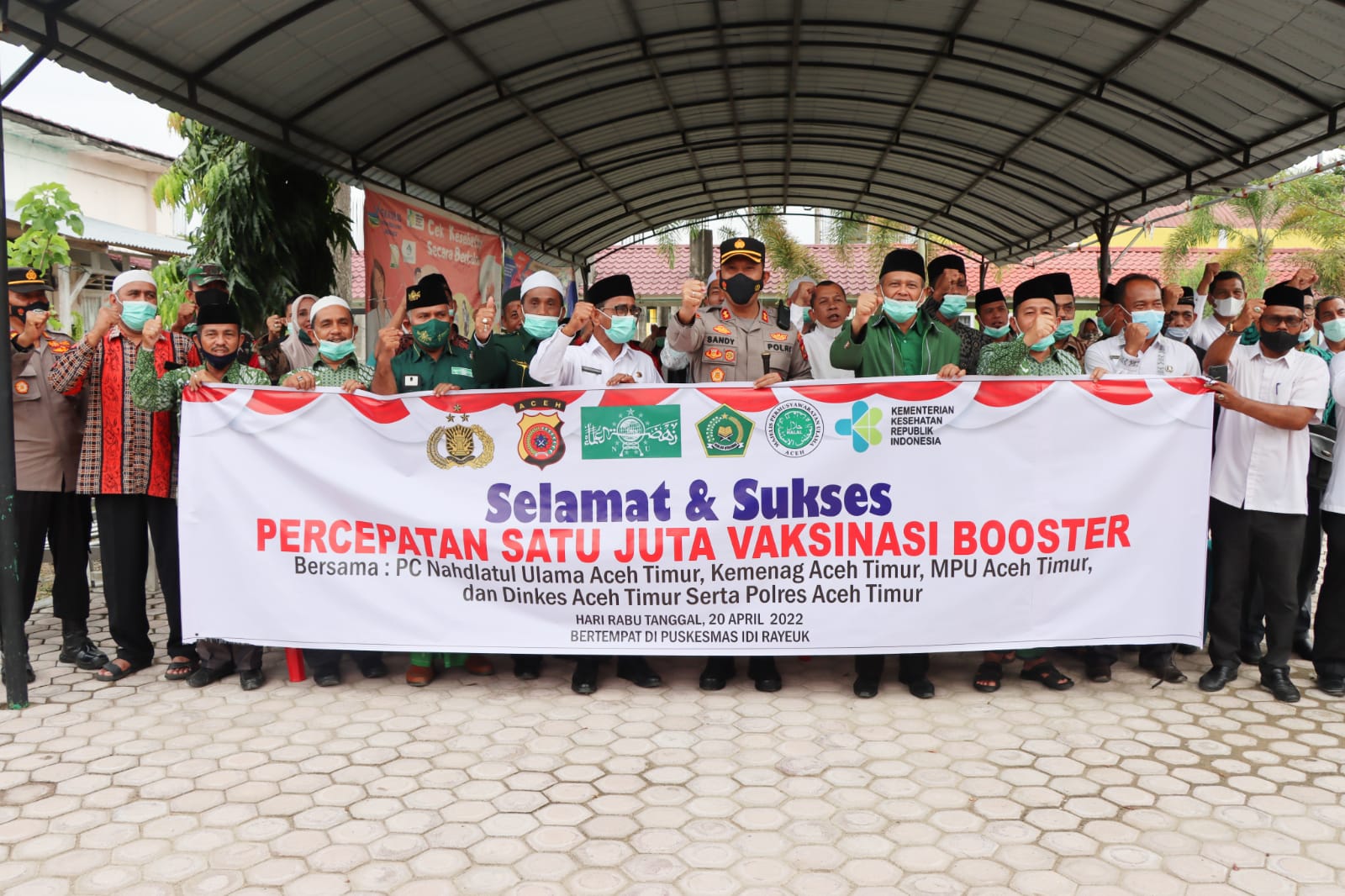 Kegiatan serupa juga dilaksanakan oleh Polres Aceh Timur bersama Kemenag dan PCNU Aceh Timur dengan menggelar vaksinasi lanjutan dosis 3 (booster) yang dilangsungkan di Puskesmas Idi Rayeuk, Rabu, (20/04/2022).