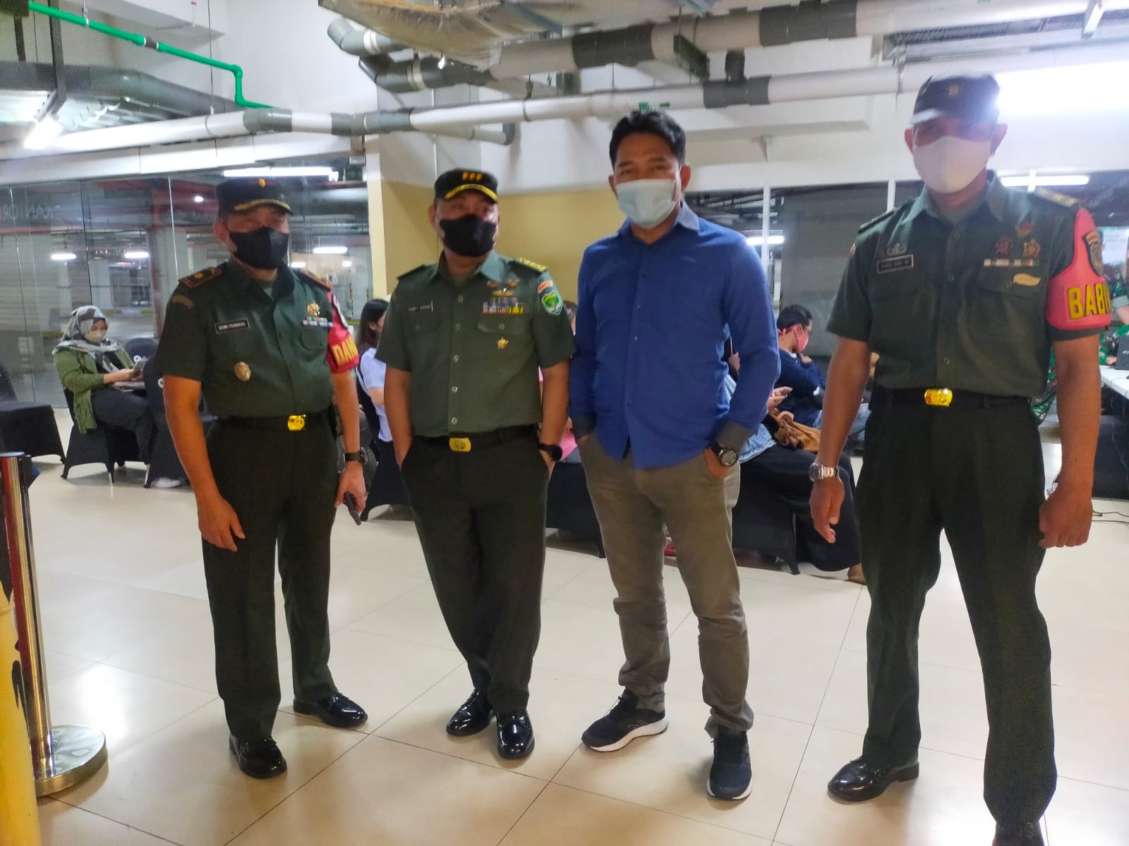KeizalinNews.com Jakarta Selatan — Mayor Inf Siswo Prandoko Danramil 01/Tebet dampingi Staf Ahli Pangdam Jaya Bidang OMP Kolonel Inf Erwin Barends meninjau kegiatan percepatan Serbuan vaksinasi di Beranda Nusantara/UKM lantai LG Mall Kasablanka, RW.12, Kel. Menteng Dalam, Kecamatan Tebet, Jakarta Selatan, Rabu (20/04/2022).