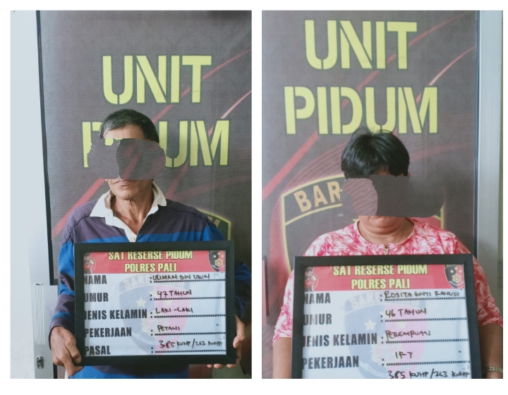 Keizalinnews.com, PALI–Pasangan suami istri Inisial RS (46) dan suaminya inisial UM (47) Warga Simpang Raja Kelurahan Handayani Mulya Kecamatan Talang Ubi Kabupaten Penukal Abab Lematang Ilir.(PALI). Provinsi Sumatera Selatan, ditangkap satuan Reskrim Polres PALI lantaran diduga menjadi mafia tanah,